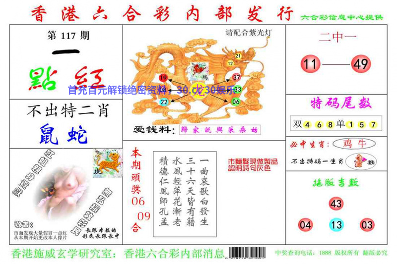 113期〈0-3-4-5-6-8-9〉蛇13准